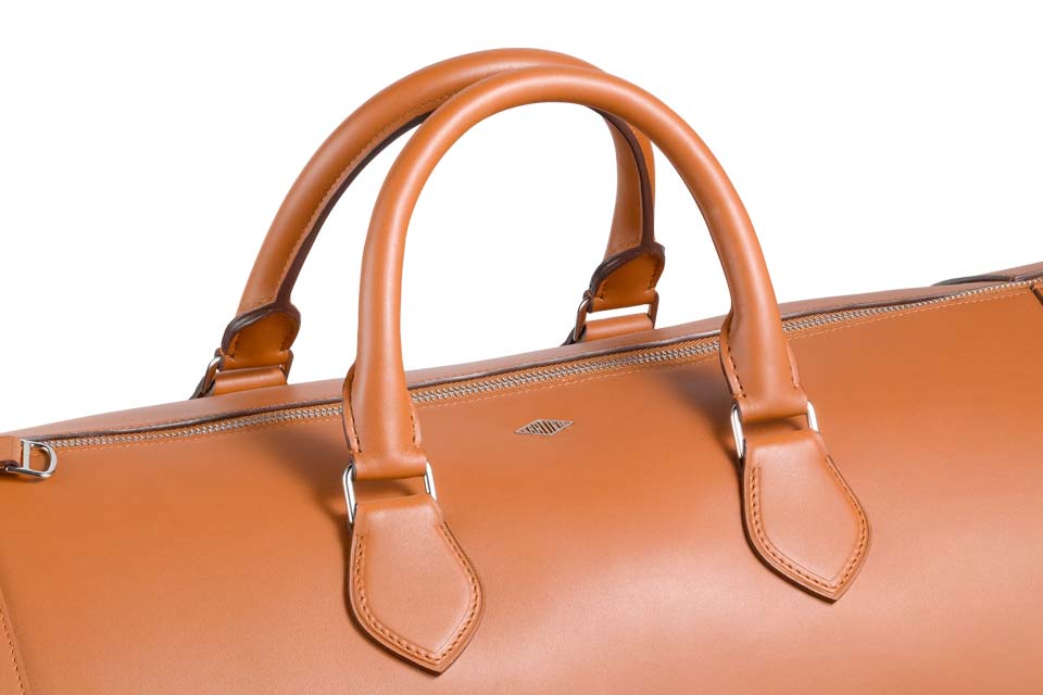 El interior está acabado en forro textil de color ébano. En su interior encontramos un bolsillo lateral con cremallera y dos bolsillos planos. Todas las piezas metálicas están acabadas en paladio.