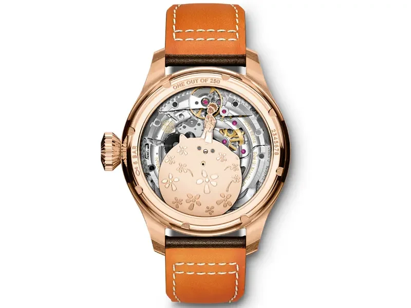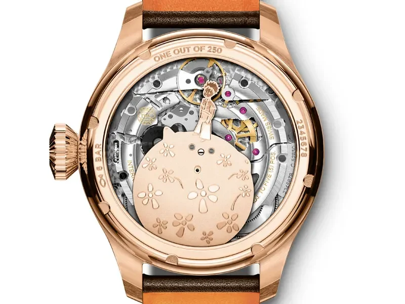 Observar detenidamente que a través del fondo transparente con cristal de zafiro puede verse al pequeño príncipe en su pequeño asteroide. Esta figura en oro de 18 quilates actúa como masa oscilante girando de forma excéntrica alrededor del eje.