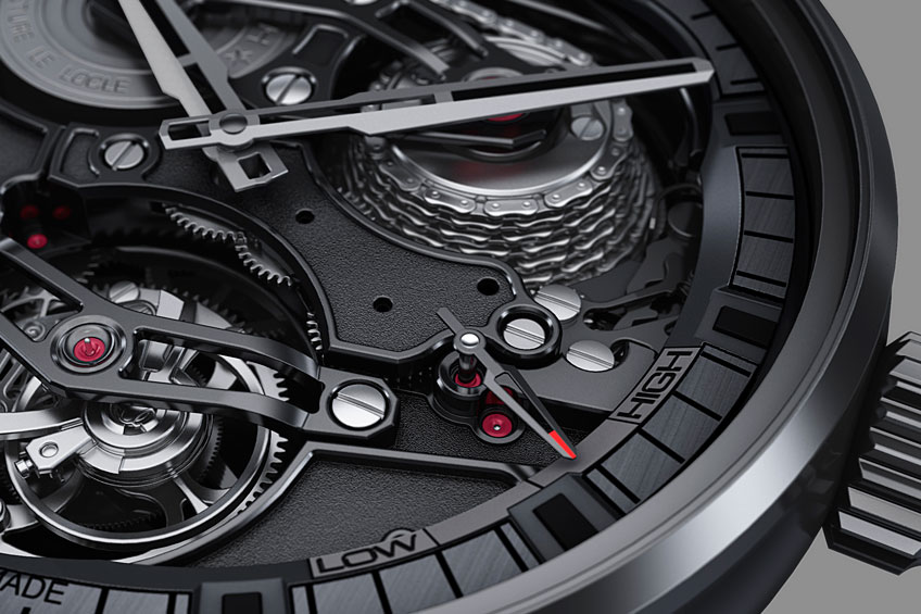 El calibre montado es El Primero 4805 de cuerda manual totalmente diseñado y realizado por Zenith. Por primera vez este movimiento combina dos de las complicaciones relojeras más emblemáticas de la casa: el tourbillon y el huso-cadena.